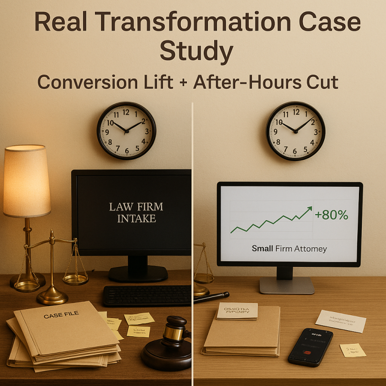 A solo/dual-partner law firm was losing time and revenue to scattered intake, inconsistent follow-up, and late-night admin catch-up.